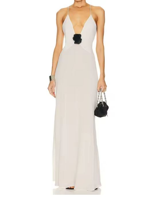 Ærmeløs maxikjole med blomsterudsmykning og Ethel-print