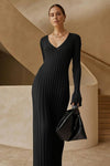 Ontdek tijdloze elegantie met deze nauwsluitende maxi-jurk met een klassieke ronde kraag en speelse uitlopende mouwen en zoom. Het is gemaakt van zeer rekbaar breiwerk en biedt een nauwsluitende pasvorm die met je meebeweegt en zowel comfort als stijl garandeert.