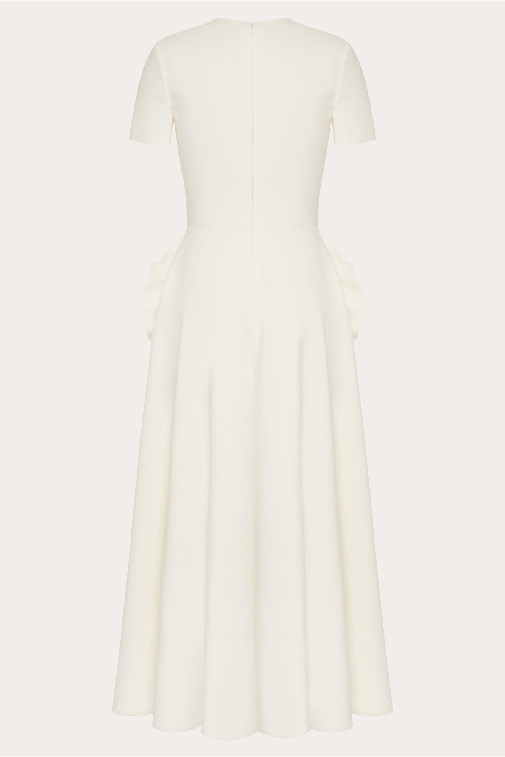 Omfavn ubesværet elegance i vores midi-kjole i crepe med blomsterapplikationer. Denne kjole har crepe-tekstur og er udsmykket med fine blomsterapplikationer, der kombinerer sofistikering med et strejf af fantasi. Den runde halsudskæring og de korte ærmer fremhæver det klassiske look, mens A-formet nederdel tilføjer et yndefuldt flow til det læglange design.